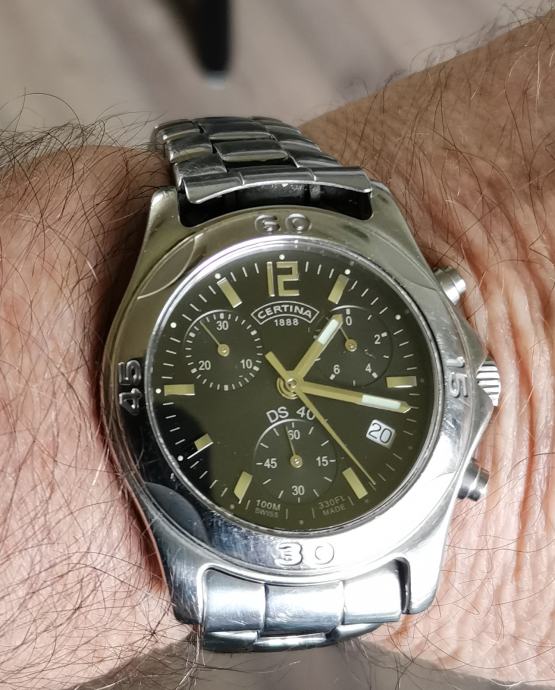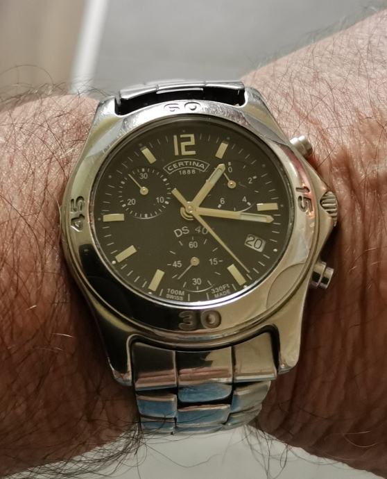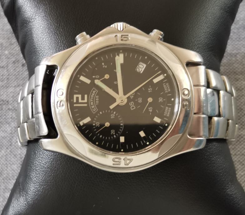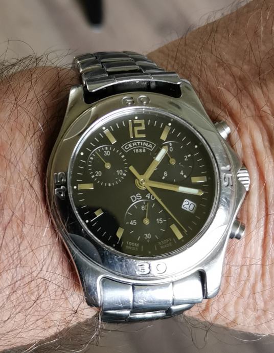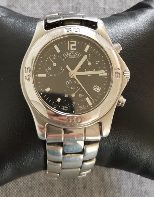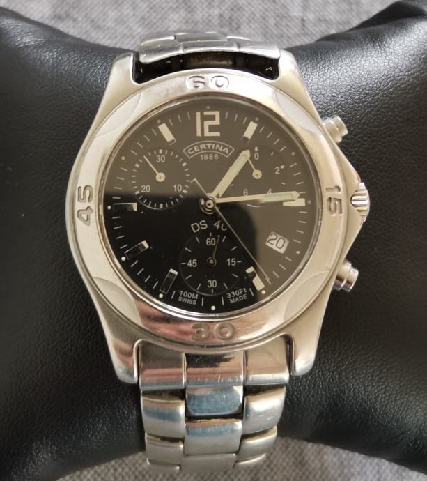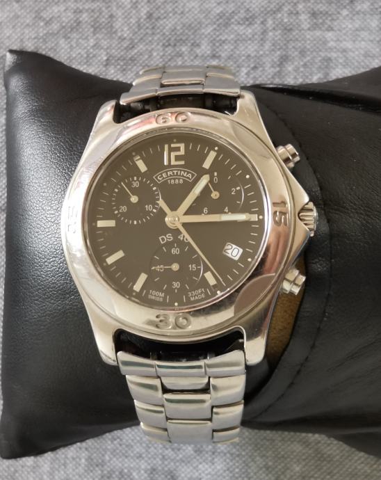 SAT "CERTINA" DS 40 542.7126.42 chronograph..SWISS..mehanizam ETA 251.272, 22 jewels..WR 100 METARA...full čelično kućište promjera 40 mm bez krunice, pushera i lugova..originalna potpisana krunica..originalna čelična CERTINA DS 40 narukvica... safirno staklo...
