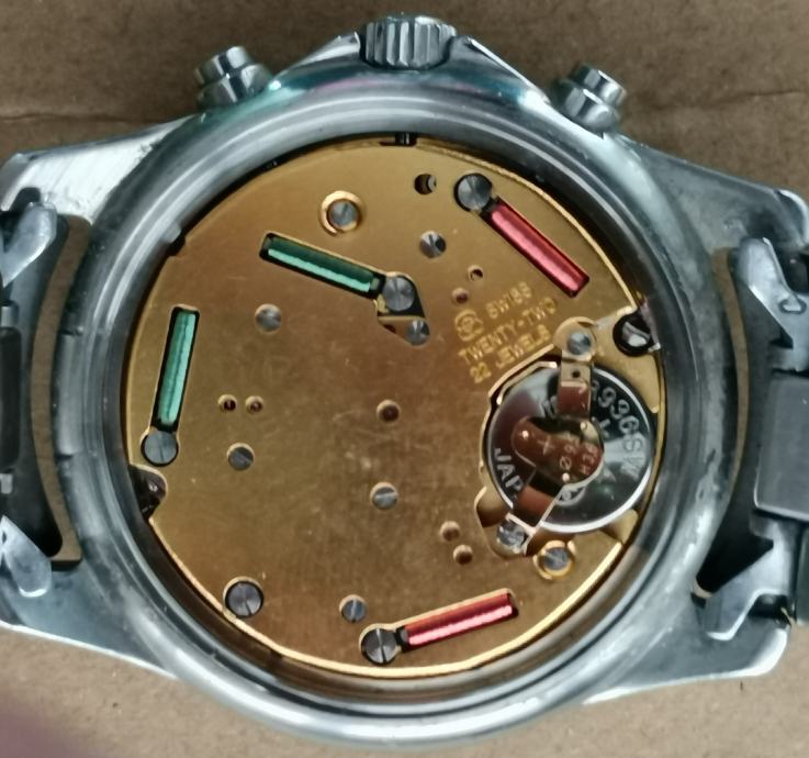 !!!!!!!!VELIKA SEKUNDARA OD ŠTOPERICE NE RADI, SAMO TREPERI KADA SE AKTIVIRA CHRONOGRAF I KADA SE ZAUSTAVLJA CHRONOGRAPH...mali gornji lijevi totalizator od štoperice uredno radi...!!!!!!!!!