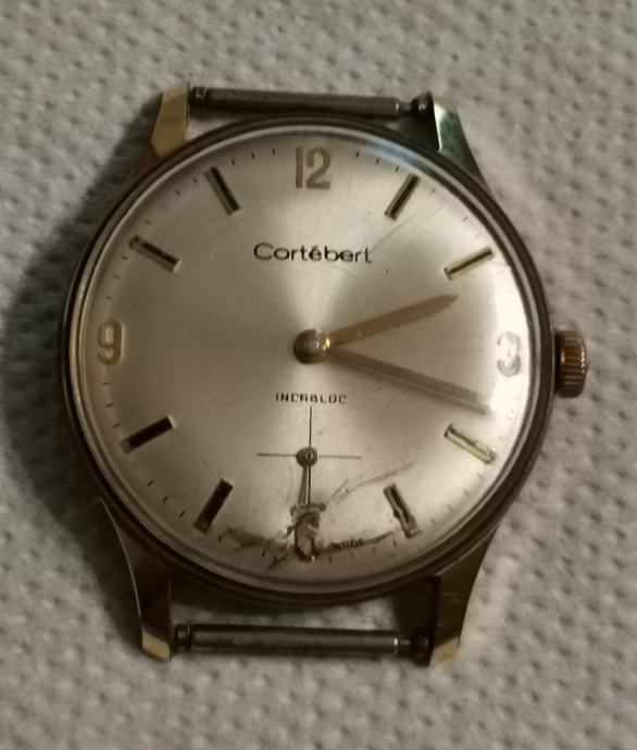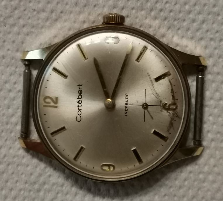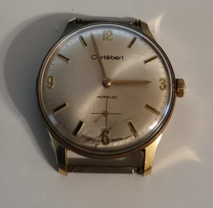 vintage 10 microna (žig pozlate) pozlaćeni sat "CORTEBERT" incabloc SWISS..promjer 35 mm bez lugova i krunice..originalna potpisana krunica..mehanizam u top stanju.