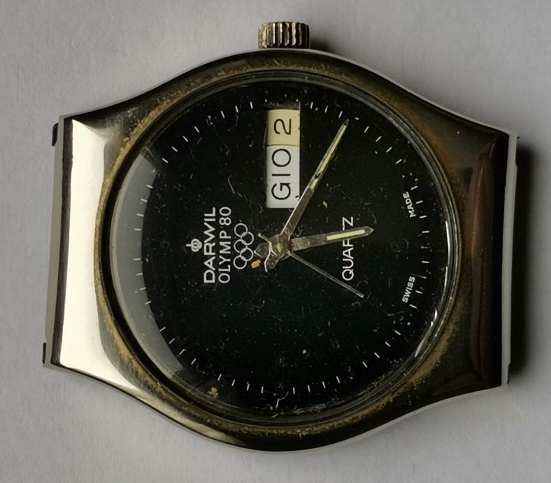 Vintage "DARWIL" OLYMP 80 QUARTZ-u povodu OI "MOSKVA" 1980.-te godine..mehanizam 6 jewels"..promjer 40x35 mm bez krunice..širina prihvata remena 17,5 mm...