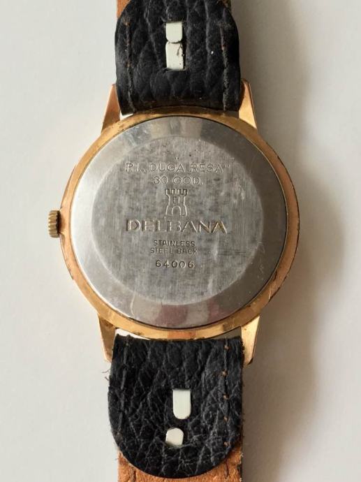 Prodajem sat Delbana navijač. Sat je u pozlati, 36 mm u promjeru i 8 mm debljine. Swiss made dres sat sa graviranim poklopcem mehanizma. Brojčanik je u champagne boji sa zlatnim kazaljkama i satnim markerima.