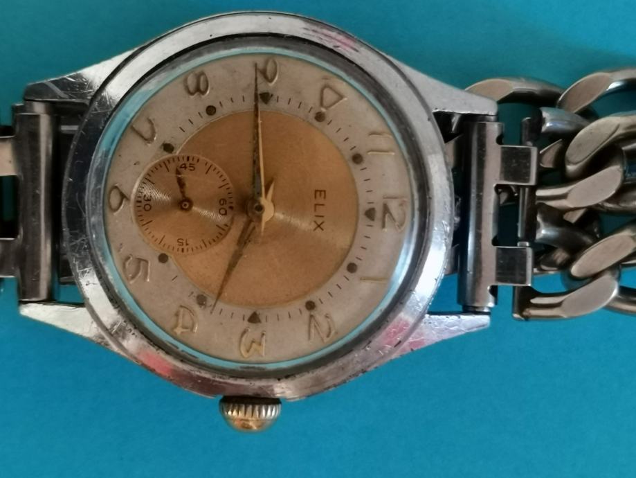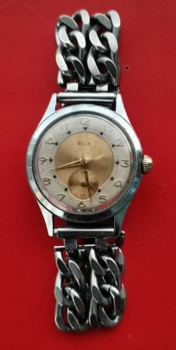 vINTAGE "ELIX" subsecond-15 jewels Swiss,,mehanizam Cuppilard 233-60..top skupa vintage "EXPANDRO" Germany DB.PAT 2111820 narukvica..promjer 32,5 mm bez krunice i lugova..pozlaćeni mehanizam u top sačuvanom stanju...