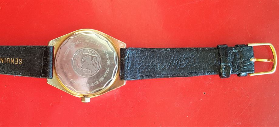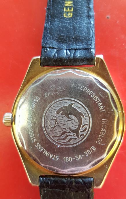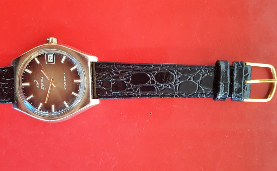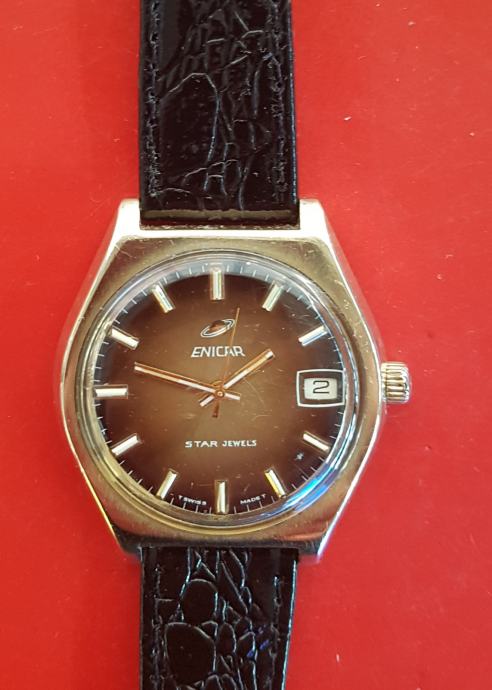 Vintage pozlaćeni "ENICAR" STAR JEWELS OCEAN PEARL-17 jewels..SWISS...vrlo rijetki caramel starbrust cifer...promjer 38 mm bez krunice i lulugova..promjer sa krunicom 40 mm...originalna Enicar krunica...novi remen..