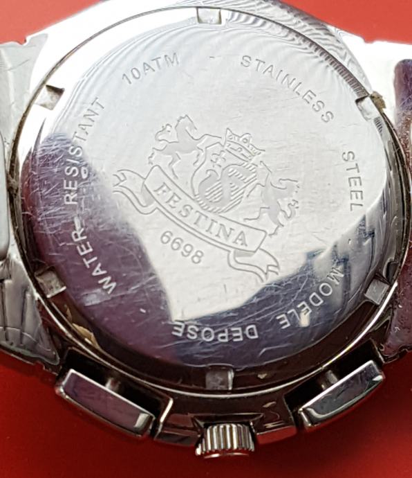 "FESTINA" 6698 MODEL DEPOSE..CHRONOGRAPH..mehanizam MYOTA JAPAN F800..full čelično kućište promjera 43 mm sa krunicom...originalna narukvica....2004. godina. WR 100 atmosfera.