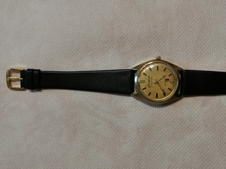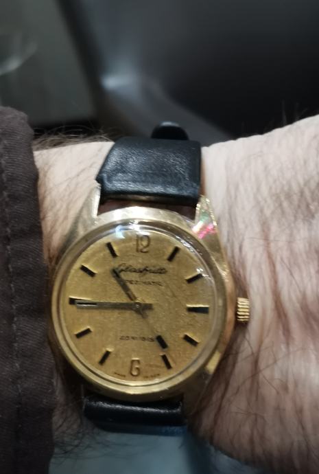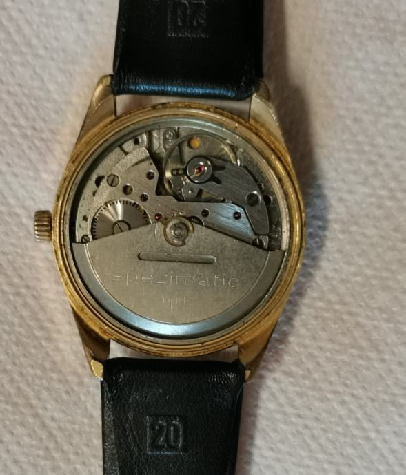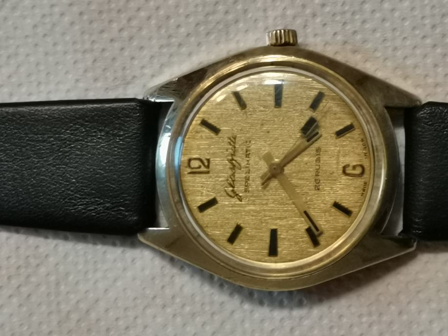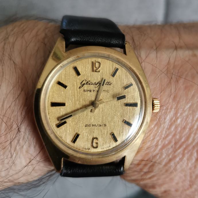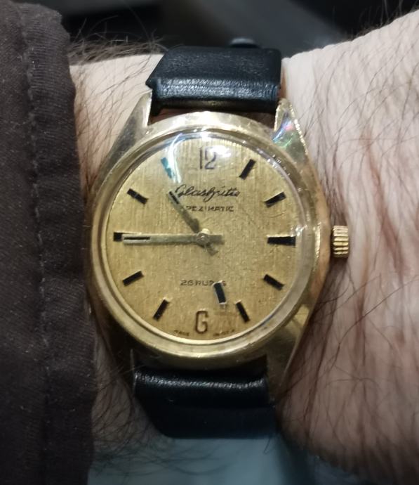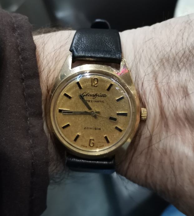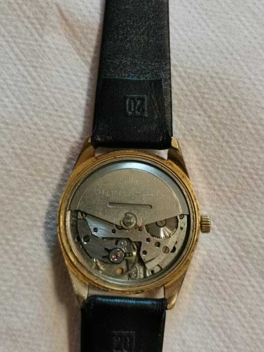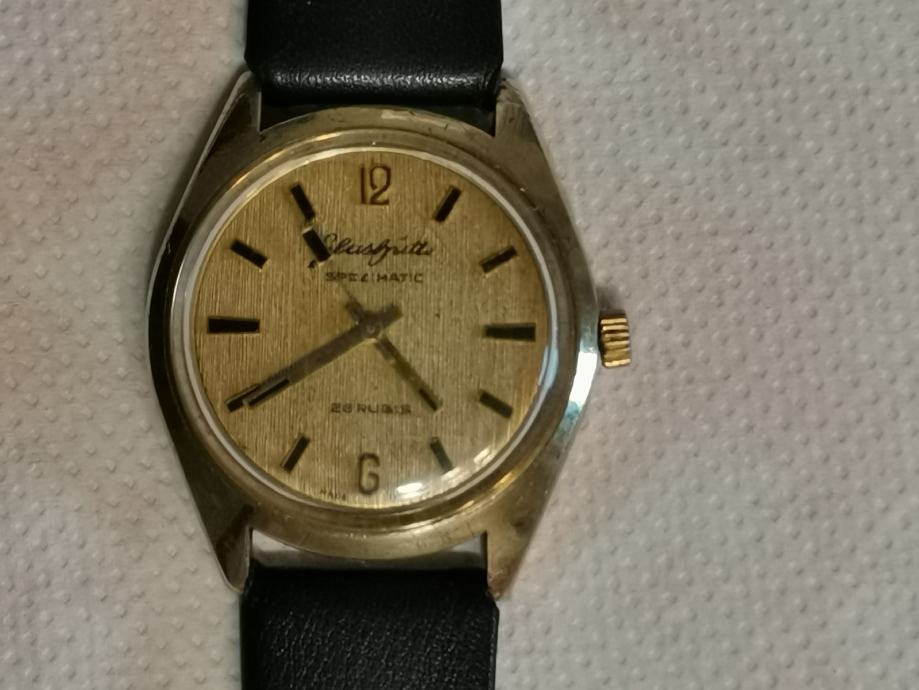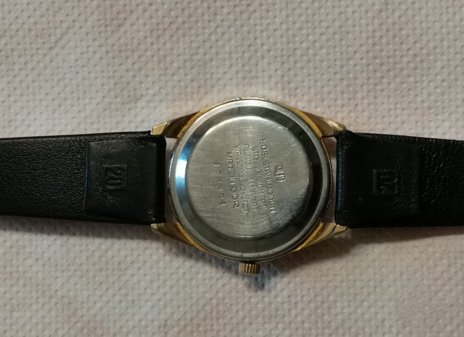 Vintage 20 microna pozlaćeni GUB "GLASHUTTE" SPEZIMATIC..DDR...26 rubis..automatic..promjer 34.7 mm bez krunice i lugova...širina prihvata remena 18 mm...NOVI REMEN...LINEN DIAL..
