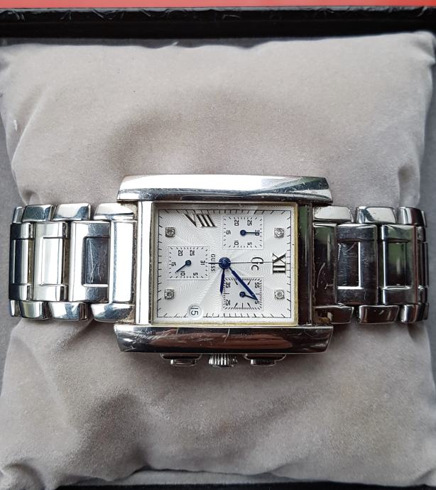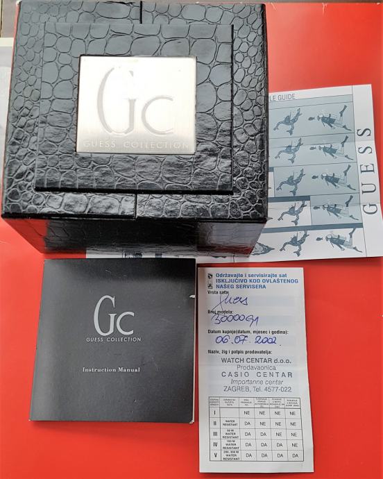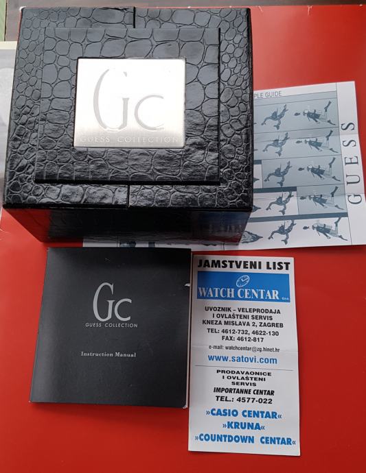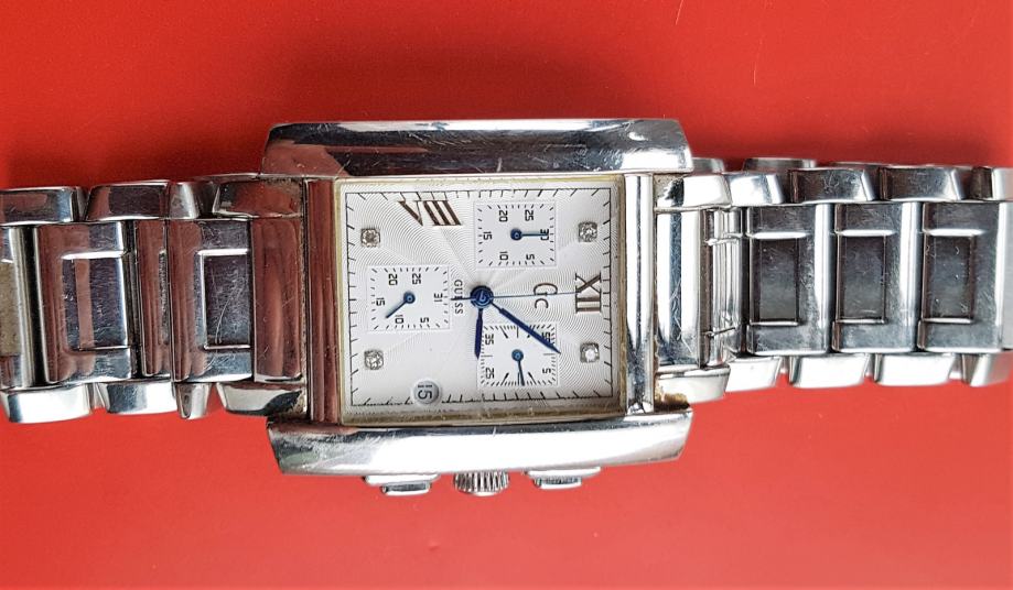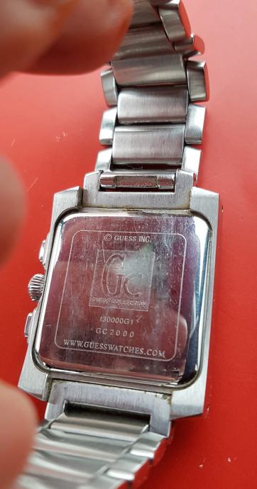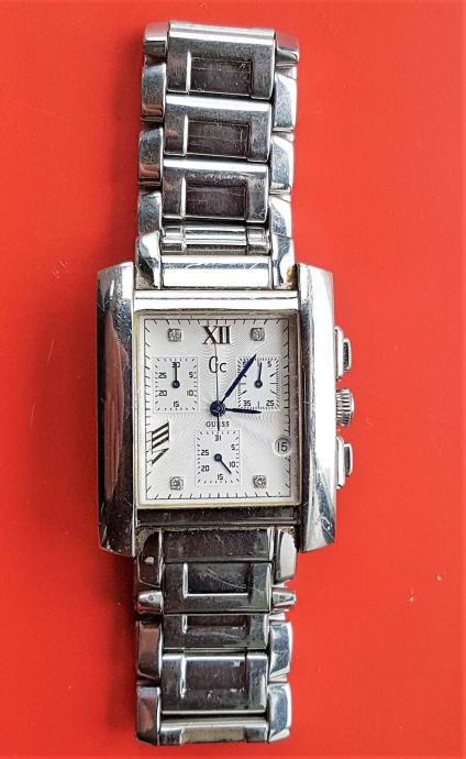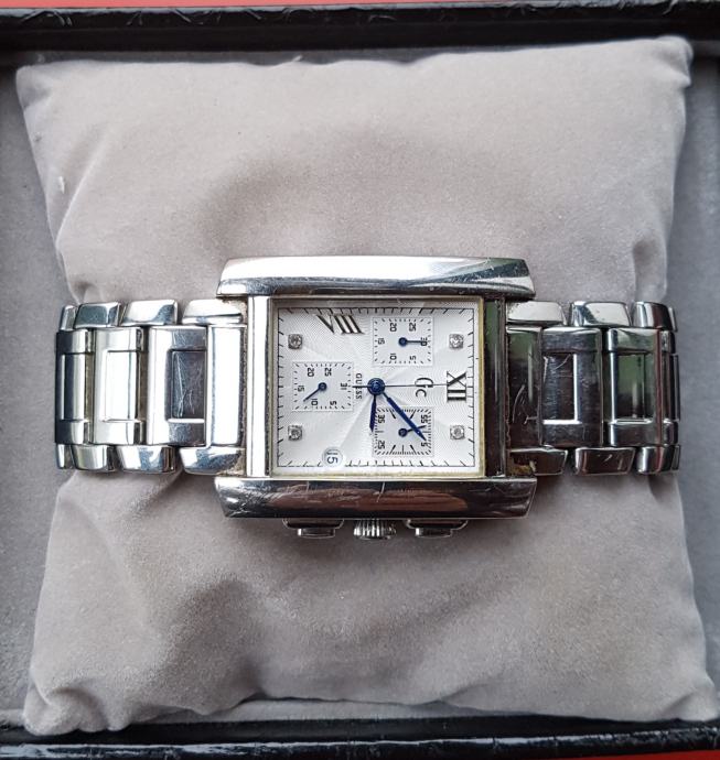 ORIGINAL "GUESS" GC COLLECTION GC2000-I30000G1...CHRONOGRAPH...MEHANIZAM ISA 8161- SWISS-3 JEWELS...FULL ČELIČNO KUĆIŠTE PROMJERA 40X34 mm bez krunice i pushera...originalna narukvica širine 22 mm...kutija, knjižica, jamstveni list iz 2002. godine..
