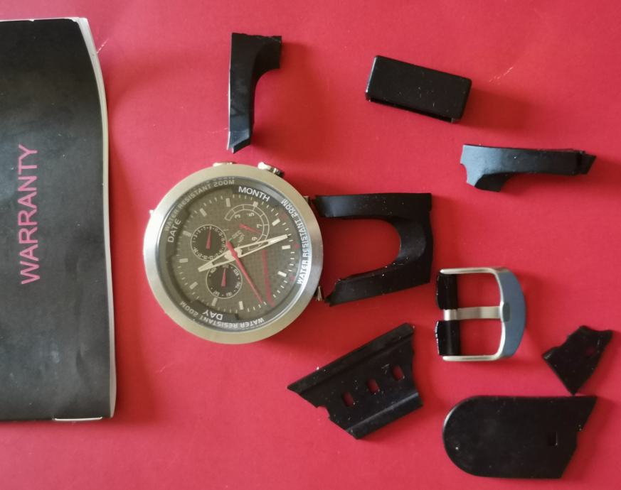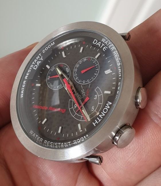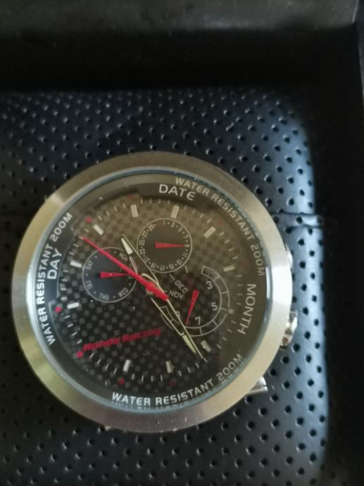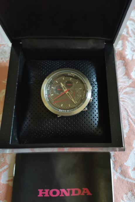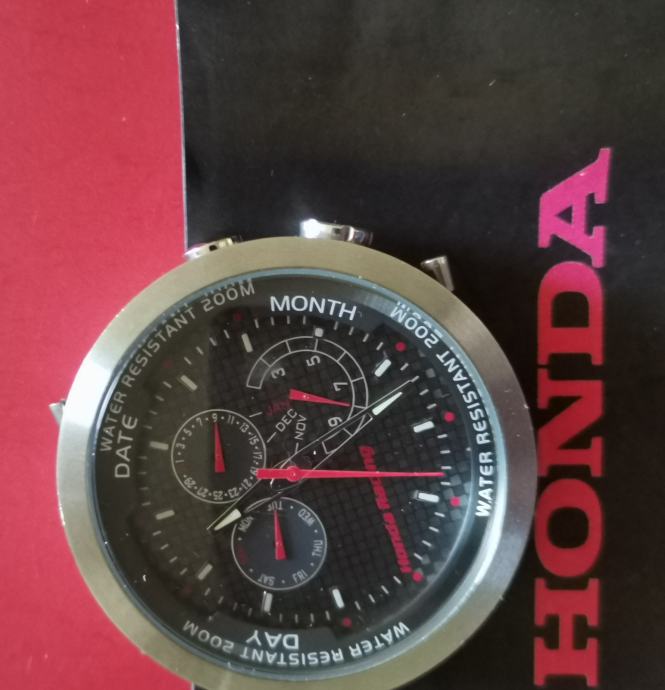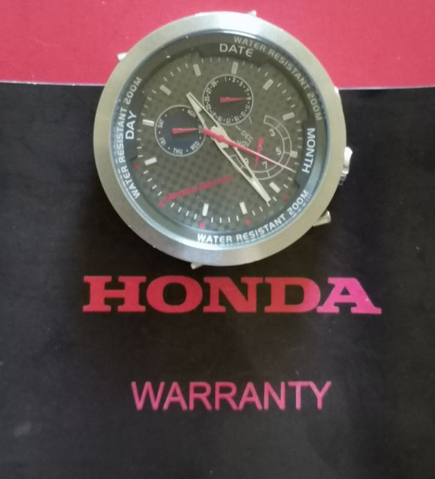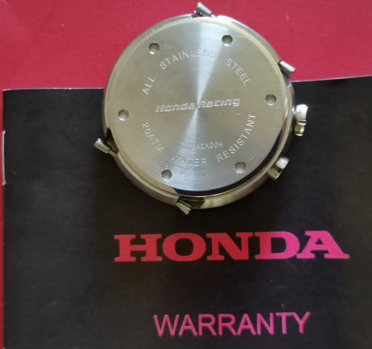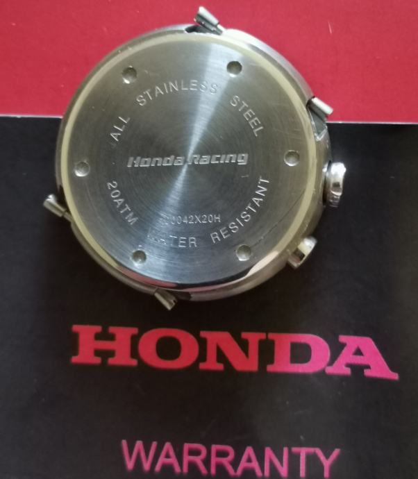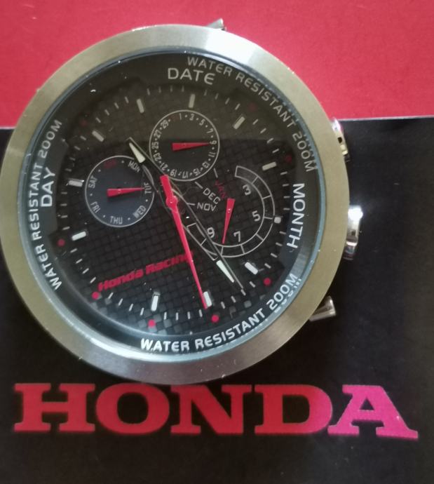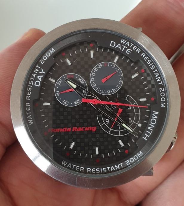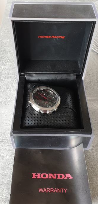 RIJETKO....Službeni sat "HONDA" RACING 100042X20H..2019 GODINA. cifer od karbonskih vlakana..full čelično kućište 43,7 mm nez krunica..debljina 13,3 mm--saphirno staklo..WR 200 metara.. original kutija sa jastučićem i knjižicom..remen se raspao, kopča prisutna..