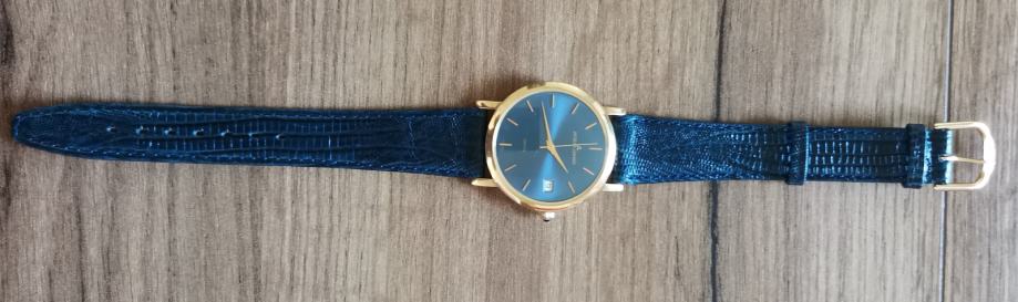 Pozlaćeni sat "JACQUES LEMANS",,SWISS made..top mehanizam ETA 955.112-7 jewels...promjer 34 mm bez krunice i lugova..debljina 8 mm..širina prihvata remena 18 mm..novi kožni "HETTA" Swiss remen,