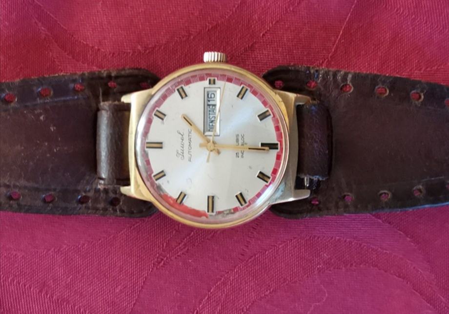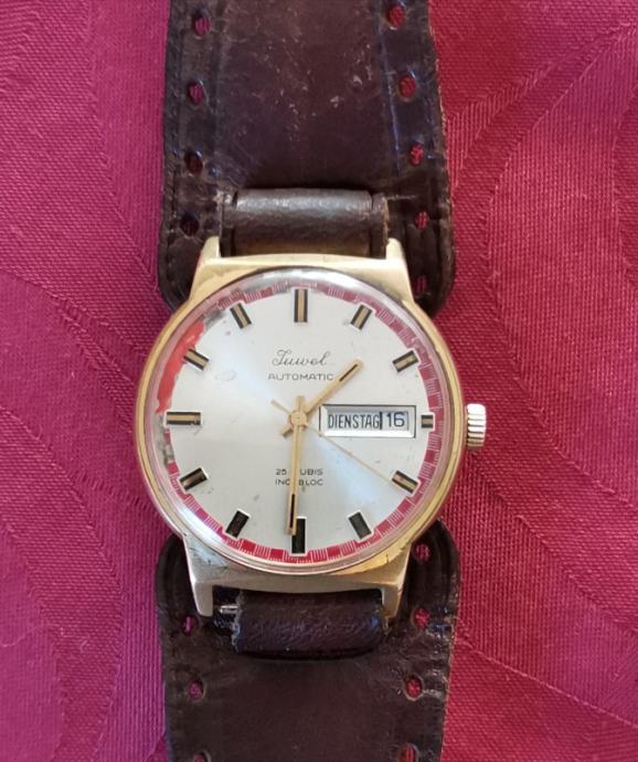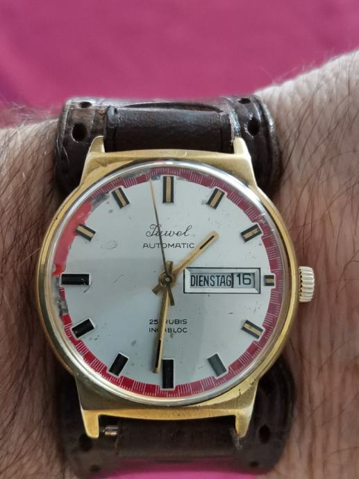 Vintage "JUWEL" /JUNGHANS AG.-GERMANY/ automatic...30 jewels..šezdesete godine...promjer 35 mm bez lugova i krunice..retro kožni remen iz vremena..