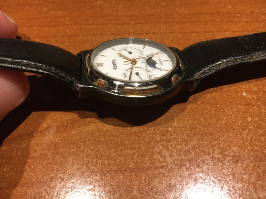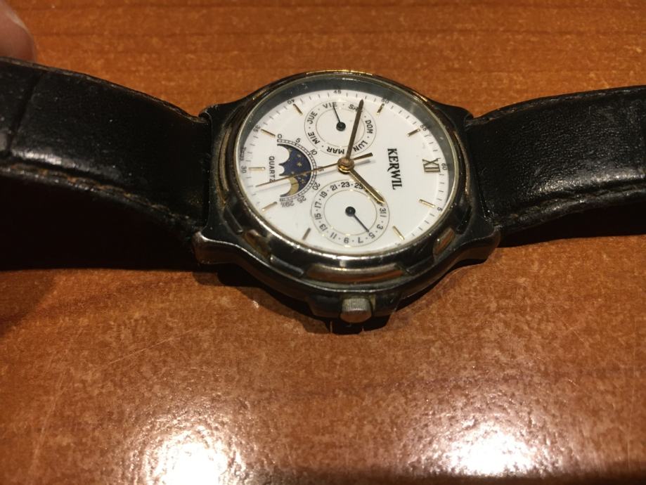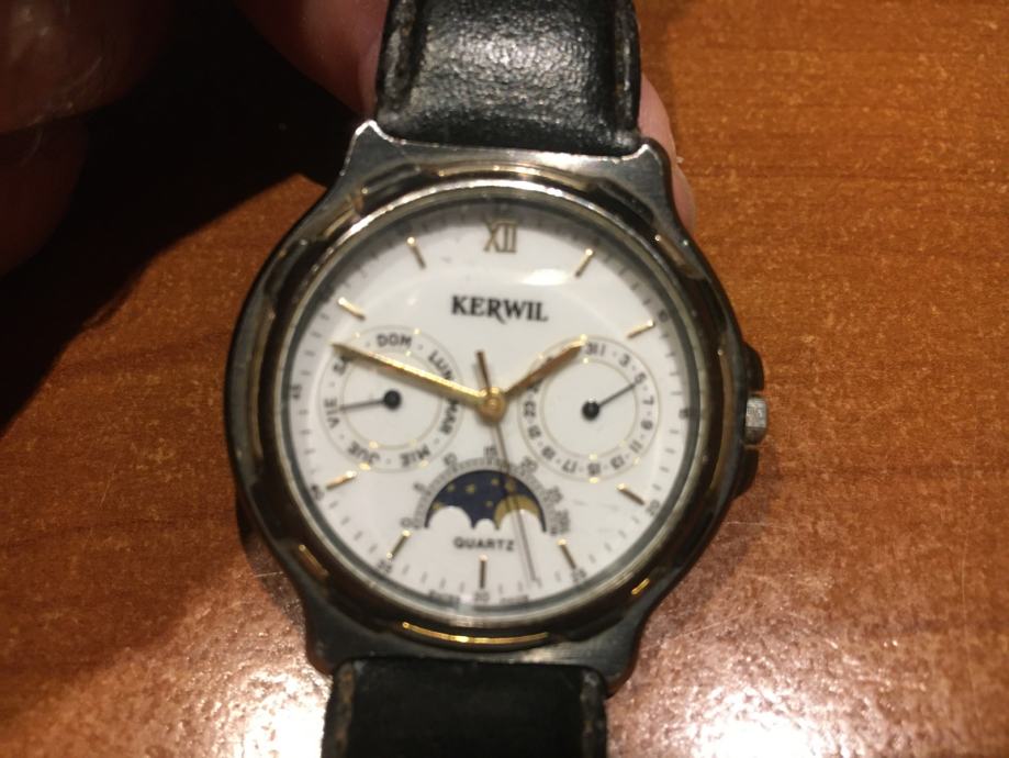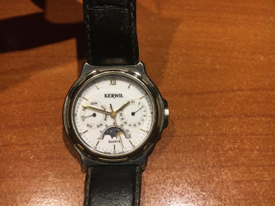 Sat je kupljen 1990 godine. Pokazuje dane u mjesecu i tjednu, te mjesečeve mijene. Ispravan i točan. Swiss made. Može i zamjena za neki ispravan