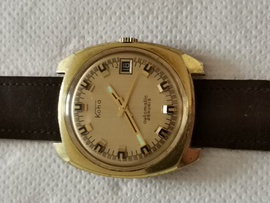 Vintage pozlaćeni sat "KOHA" 25 rubis automatic...Germany...kvalitetan mehanizam PUW 1561...f=21600 A/h...promjer 36 mm bez krunice i lugova...širina prihvata remena 19 mm.