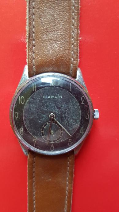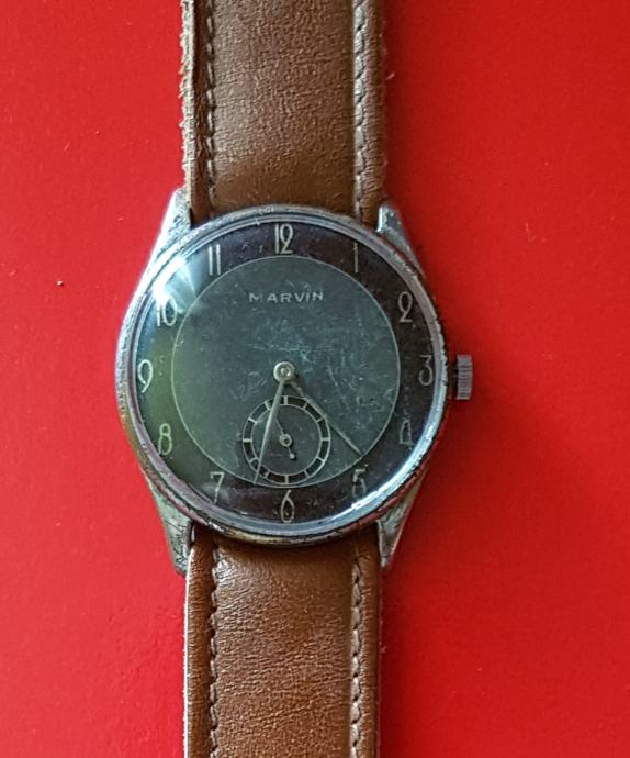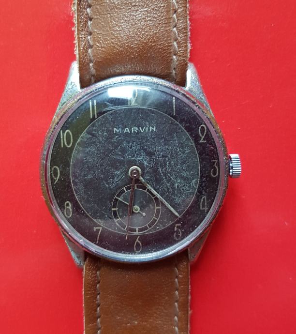 SAT "MARVIN" MILITARY TIP iz četrdesetih godina sa vojnim mehanizmom call 184-16 jewels..fiksne poteznice..promjer 32,5 mm mez krunice i lugova..promjer sa krunicom 34,2 mm.