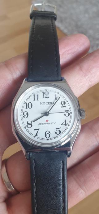 Vintage "MOSKVA" SSSR..dosta rijetko..proizvodio se pod imenom "MOSKVA" od 1950. do 1964. godine, kada je preimenovan u "POLJOT"..mehanizam UMF . čelično kućište promjera 35 mm bez krunice i lugova.