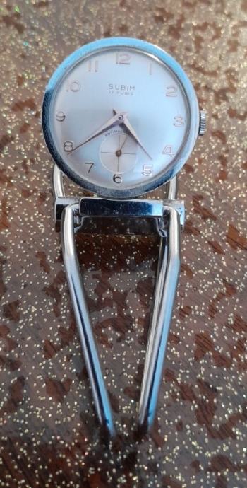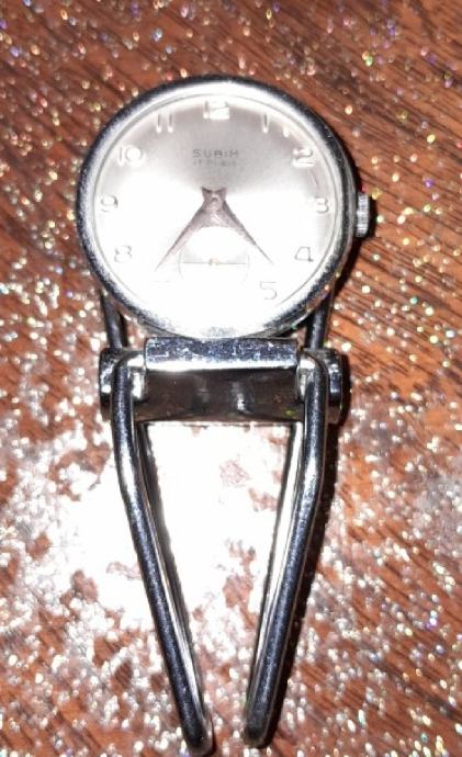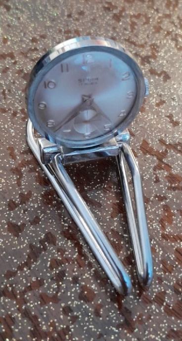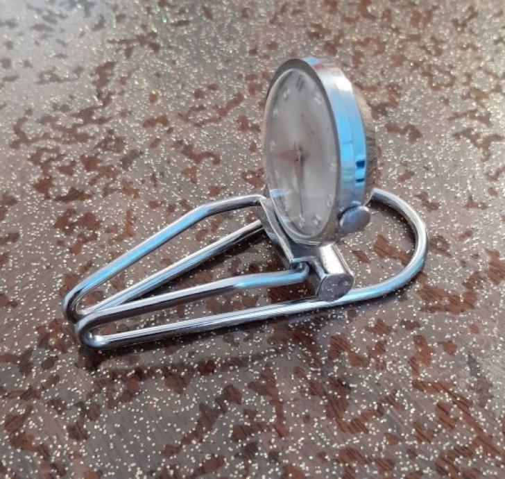neobičan sat na navijanje sa kopčom za odjeću ili već za nešto,sat se može okrenuti ,sat je kao nov ispravan