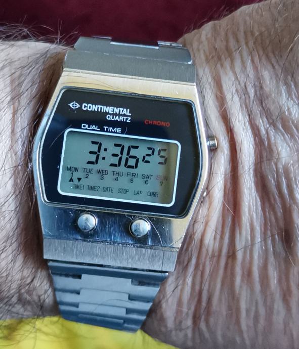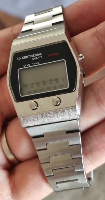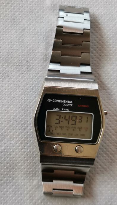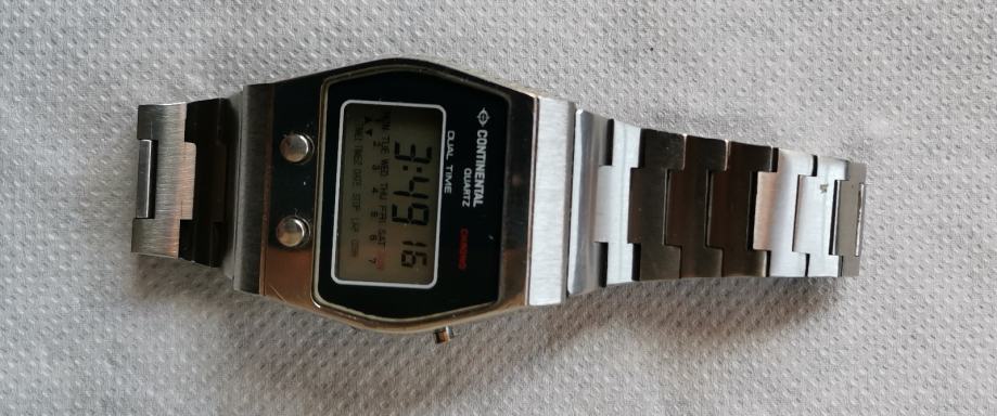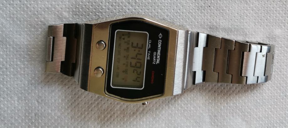 Vintage LCD sat "CONTINENTAL" DUAL TIME..SWISS..full čelično kućište orimjera 40,5 x35 mm bez pushera...čelična narukvica..