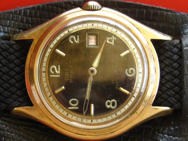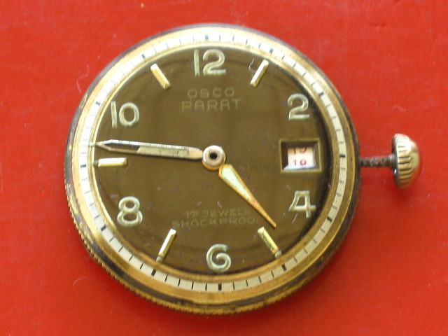 Vintage pozlaćeni "OSCO" PARAT...dwo tone cifer...17 jewels...incabloc...1956. godina...Otto Sshlund@Co KG-Germany...mehanizam "Osco" 66 D-17 jewels...trishok sustav zaštite...Glycydur vijak ravnoteže....promjer 32,5 mm bez krunice i lugova...