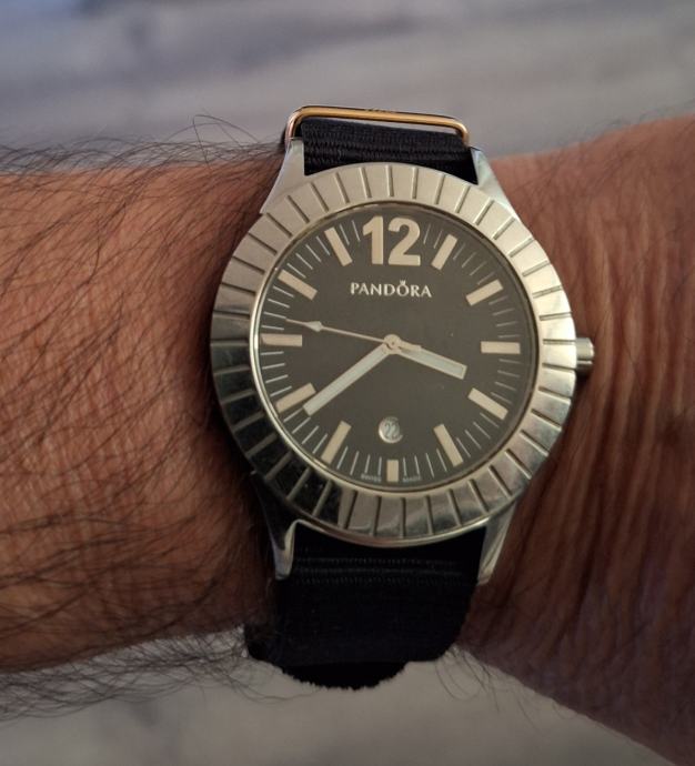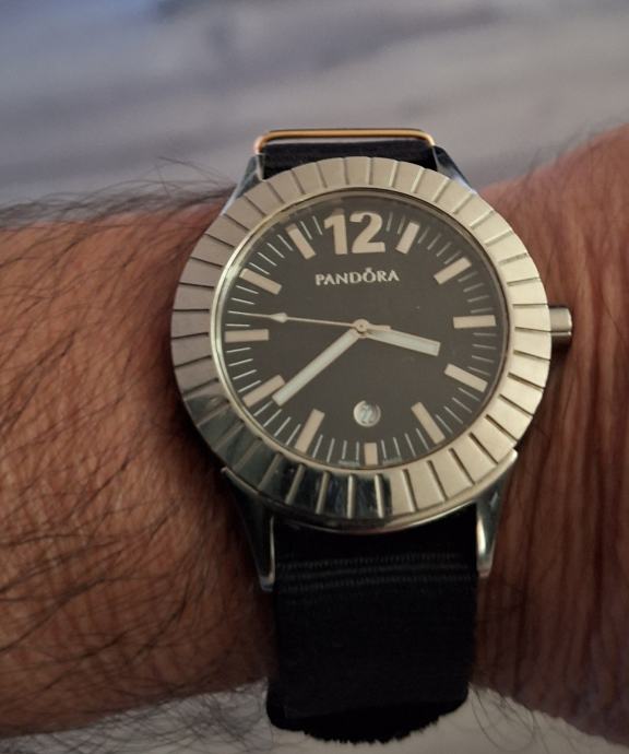 Luksuzni muški sat "PANDORA" IMAGINE GRAND 811006BK-SWISS..polirano čelično kućište promjera 41 mm bez krunice i lugova...pravi crni dijamant na krunici 0,015 karata..safirno staklo...Swiss mehanizam...širina prihvata remena 20 mm...debljina 10,5 mm...novi nato remen...22.07. 2025. godine stavljena nova urarska baterija...WR 50 metara