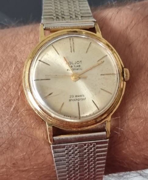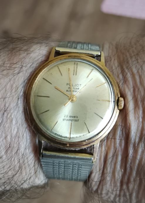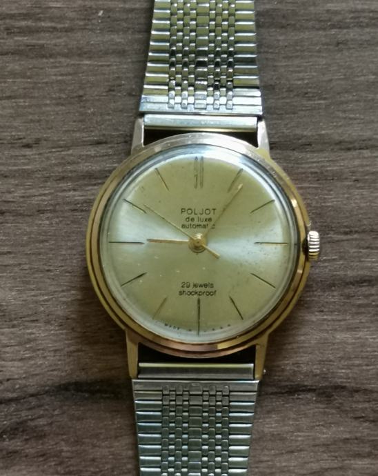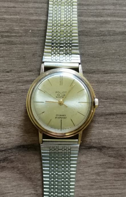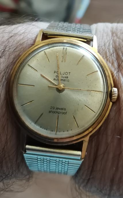 Vintage rijetki, 20 microna pozlaćeni "POLJOT" DE LUXE AUTOMATIC.. 29 jewels..SSSR..call SU 2416--1969. godina...promjer 35 mm bez krunice i lugova...kućište u top stanju..nova metalna narukvica...