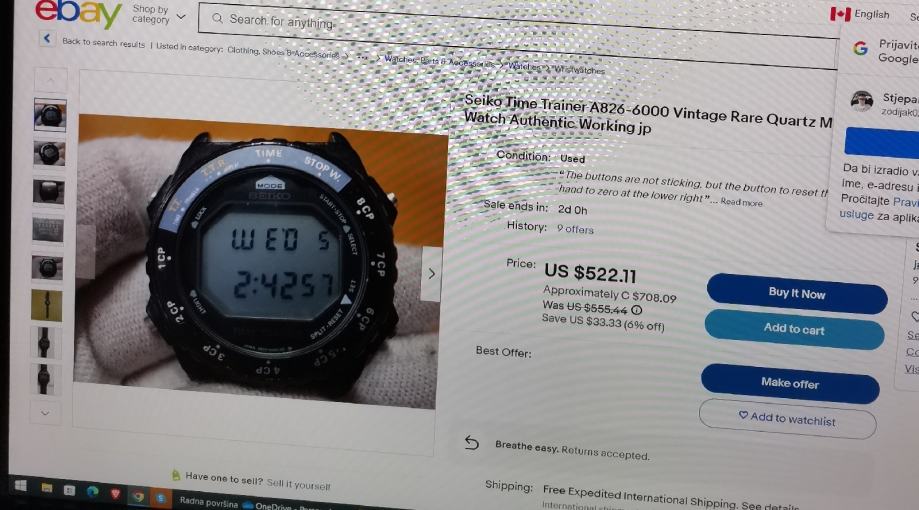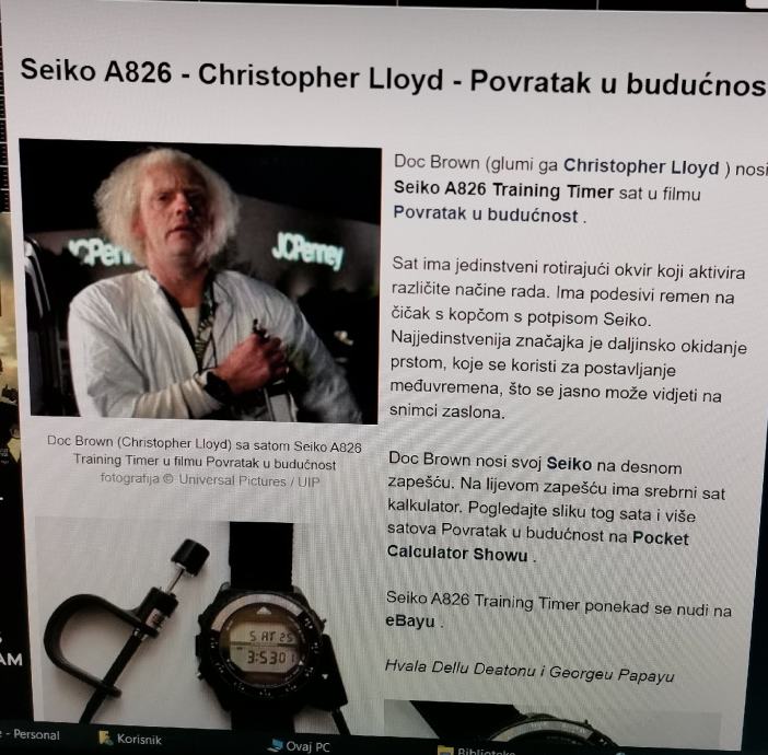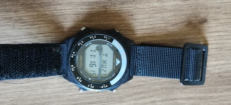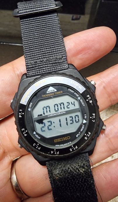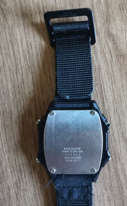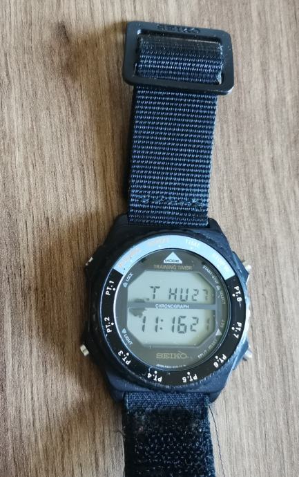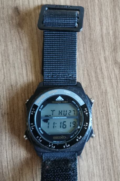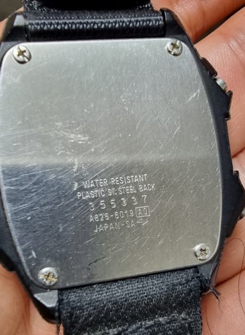 Sat "SEIKO" A826-6019 TRENING TIMER..JAPAN..1983. godina..sat kakav je nossio Christopher Lioyd u filmu "POVRATAK U BUDUĆNOST"..PROMJER 38 mm ..originalni Seiko remen i Seiko kopča...SAT ISPRAVAN I RADI, SA MALIM OŠTEĆENJEM NA DISPLEYU-VIDJETI FOTOGRAFIJE...rijedak i skup model na vanjskim aukcijama