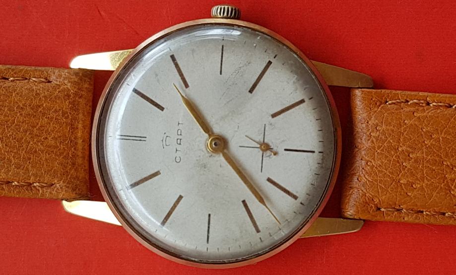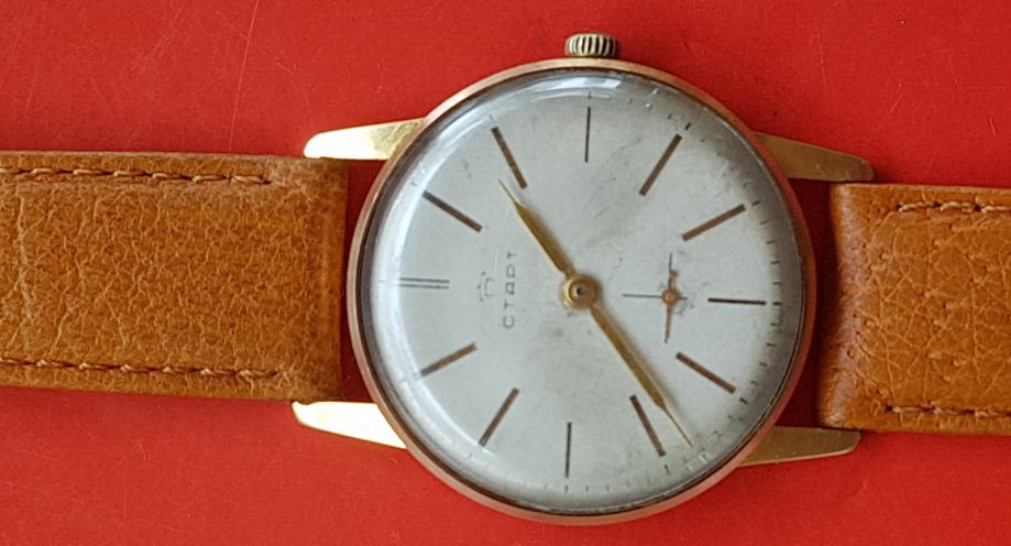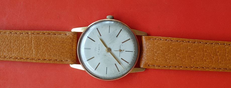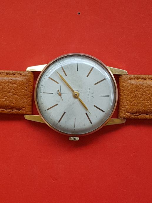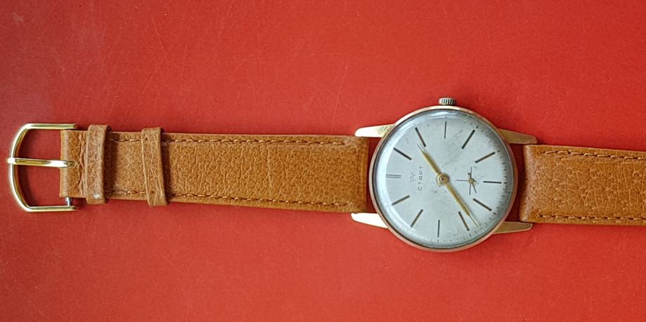 Pozlaćeni (žig pozlate) "START" SSSR...17 rubis..promjer 34 mm bez lugova i krunice...SAT U DOBROM STANJU...MEHANIZAM I KUĆIŠTE PREFEKTNI..NOVI KVALITETNI KOŽNI REMEN.