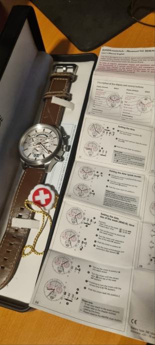 Prodajem sat u kutiji, na slici je Swiss Military by Chrono kronograf s kožnim remenom. Cijena 60€.