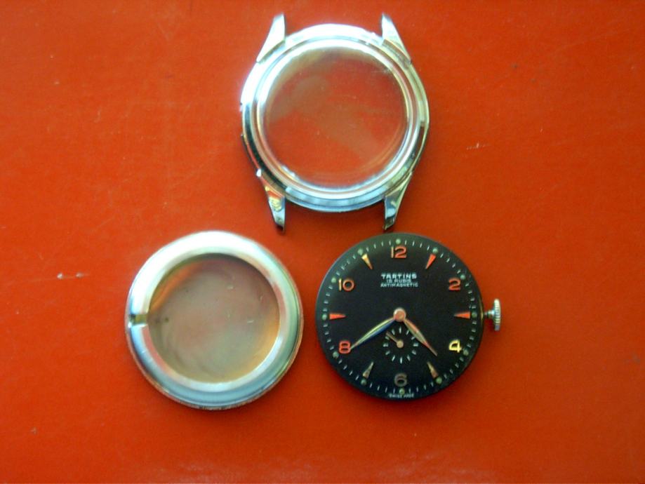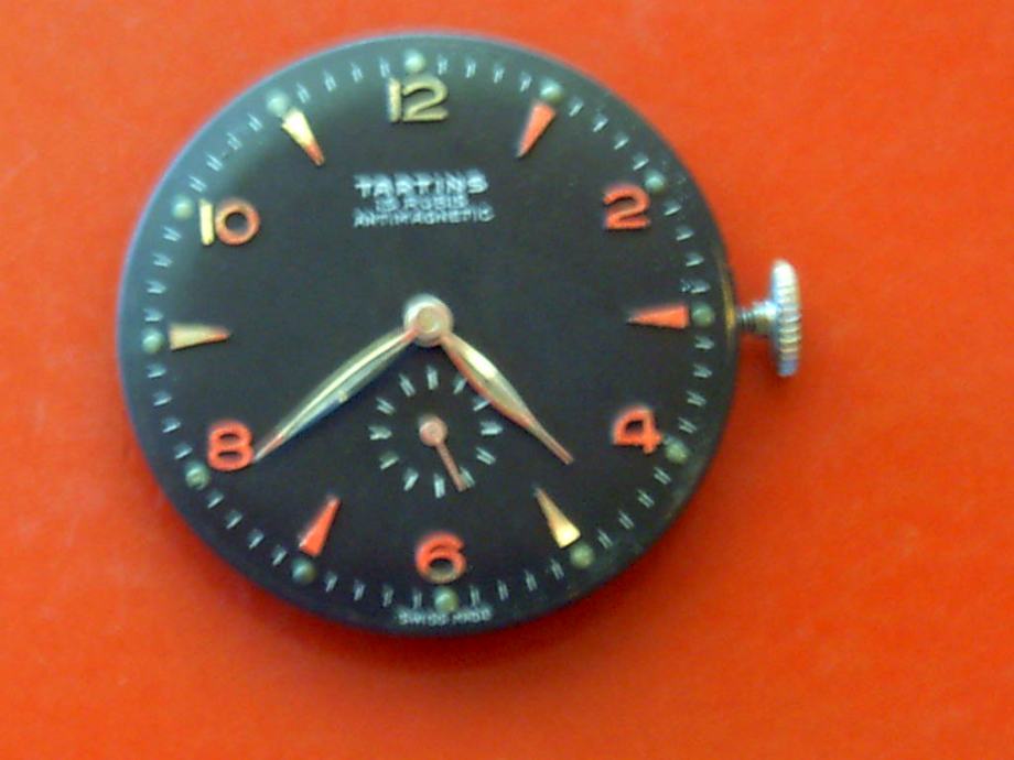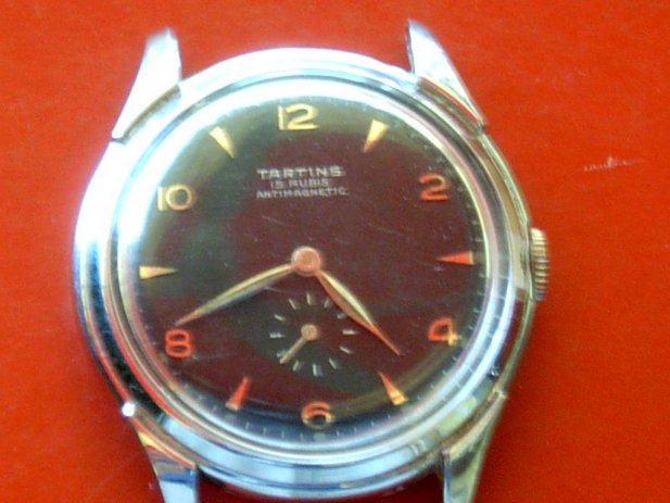 RARE...SAT TARTINS-15 RUBIS-subsecond-1956. godina...call BF 34..antimagnetic...DE LUXE...crni cifer u perfektnom stanju, iluminirani markeri , staklo i kućište bez ogrebotina.....dna poklopcu tragovi vremena i nošenja...promjer 35mm bez krunice, debljina 11 mm...KOLEKCIONARSKI PRIMJERAK.