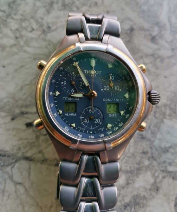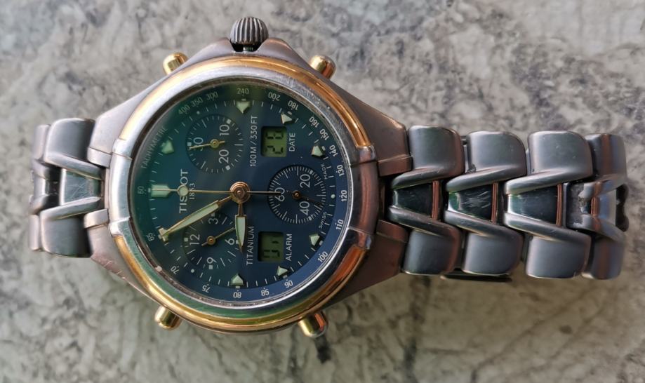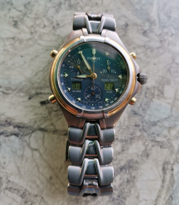 Sat "TISSOT" T-670 TITANIUM..chronograph..SWISS ..ana/digi..alarm..date..top mehanizam ETA 251.285-23 jewels..saphire kristal...full titanium kućište promjera 38 mm bez krunice, pushera i lugova..original potpisana titanium narukvica za tanju ruku.. 26,08. 2022. stavljena nova urarska baterija..cijena ovakvog sata na vanjskim aukcijama i do 350 dolara-vidjeti zadnju fotografiju!!!!!