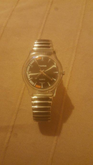 Elastična narukvica sata koji je tako reći nenošen tj.bez tragova nošenja a radi ko urica(uniseks)