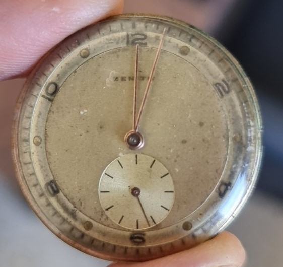 SAT "ZENITH"...mehanizam Zenith call 106, iz zlatnog sata, po referentnom broju mehanizma 1944. godina...original prsten mehanizma, original cifer i kazaljke iz vremena...
