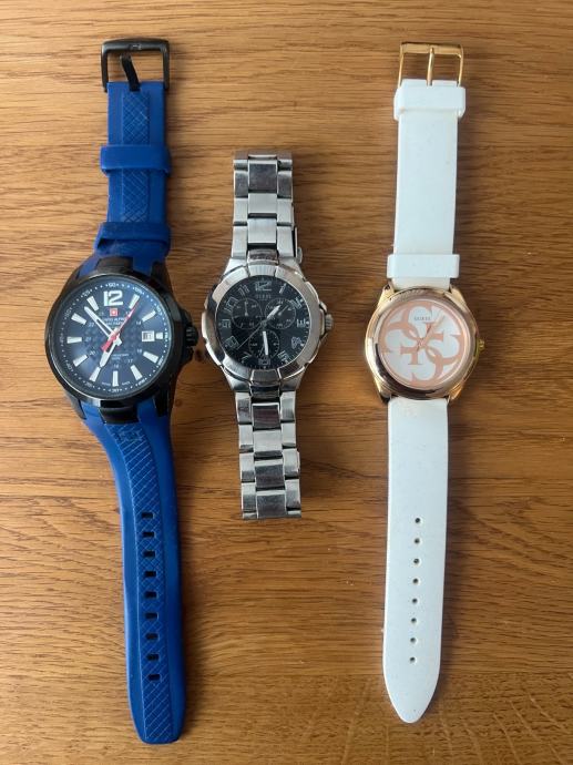 Prodajem dva guess sata i jedan swiss alpine military by Grovana! Dva sata su muška sata, jedan ženski! Guess bijeli je nosen svega dva puta!
