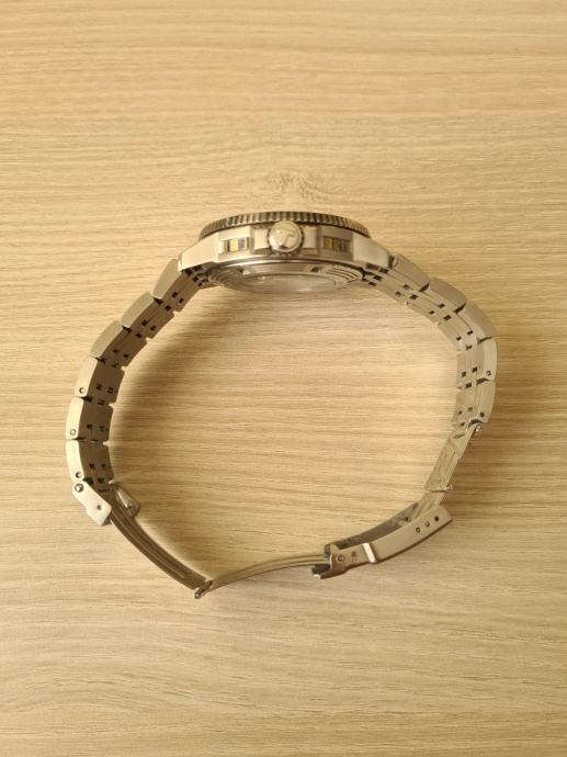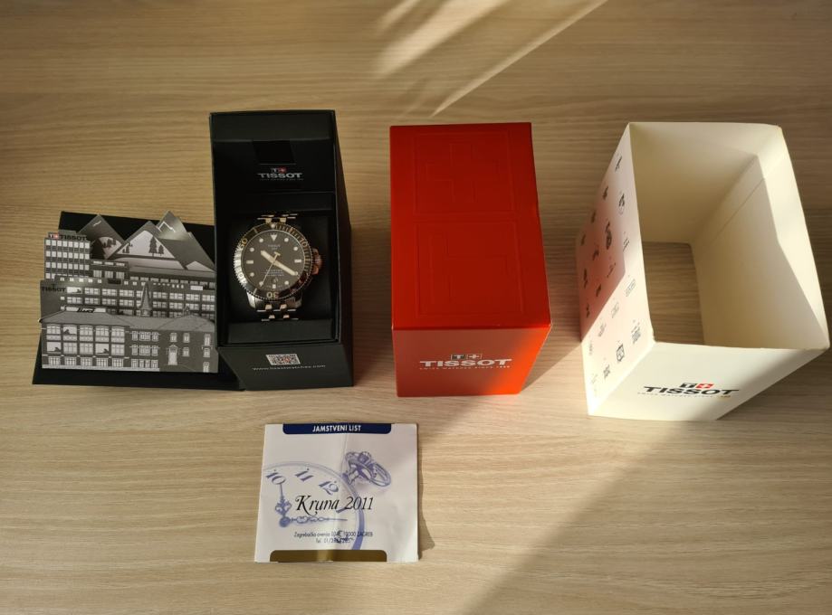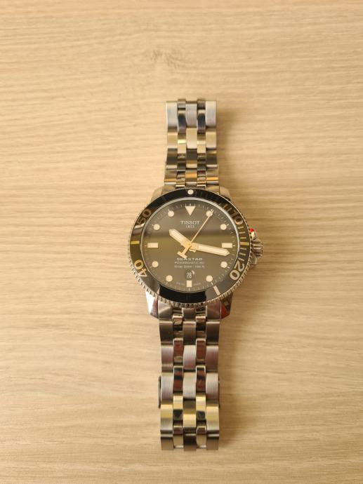 Tissot Seastar 1000 Powermatic 80, u vrlo dobrom stanju. Kućište od nehrđajućeg čelika promjera 43 mm sa safirnim staklom i vodootpornošću do 300 m čini ga pouzdanim svakodnevnim diverom. Automatski mehanizam Powermatic 80 pruža rezervu snage do 80 sati, tako da sat radi bez problema čak i ako ga ne nosite svaki dan. Narukvica ima samo manje tragove korištenja, općenito vrlo dobro očuvana. Dolazi u kompletu s originalnom kutijom, vanjskom zaštitnom kutijom i papirima. Svestran sat koji spaja sportski dizajn i švicarsku pouzdanost.