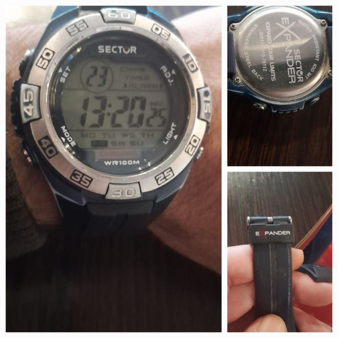 Sector Expander digitalni,u odličnom stanju, narukvica original,dan, datum, svjetska vremena, alarmi, svjetlo itd