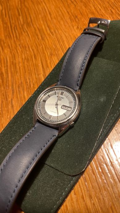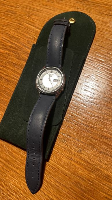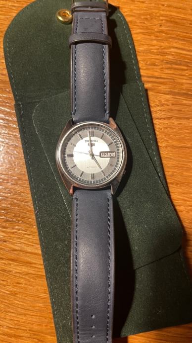 Prodajem Seiko 5 automatic, sat posjedujem 6 mjeseci i nošen je vjerojatno isto toliko puta. Cist, uredan i tocan s novim kožnim remenom.