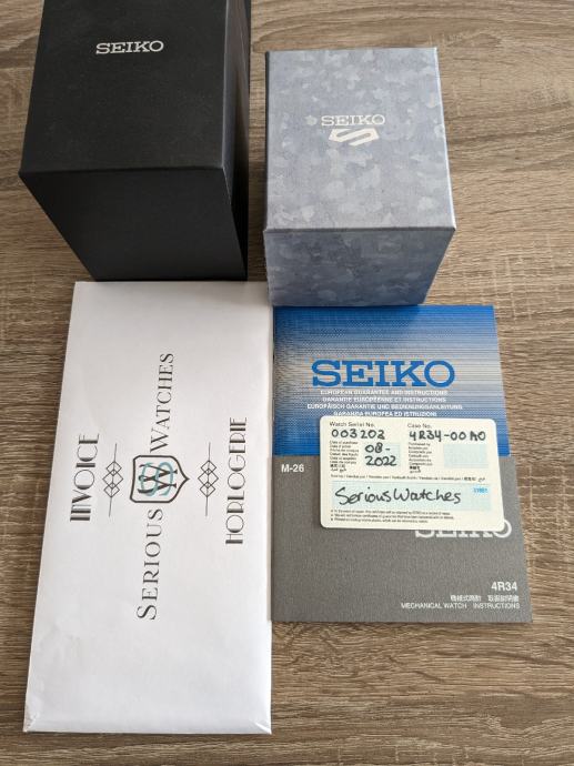 Prodajem Seiko GMT SSK001 u top stanju, bez tragova nošenja. Kupljen u EU, 08/2022. kod ovlaštenog Seiko dealera (SeriousWatches). Dolazi u full setu: vanjska i unutarnja kutija, svi papiri, ispunjena garancijska kartica (garancija 2god, važi u cijeloj EU u ovlaštenim Seiko servisima), originalni račun.