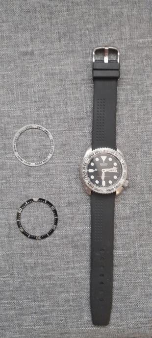 Mijenjam Seiko 7548-7000 za Citizen Diver Automatic ili Orient Mako, Kano ili Ray. Uz sat idu 2 originalna insert bezela. Sve uredno radi, luneta se okreće u oba smjera. Na njemu je ovaj originalan, dosta istrošen bezel, a njegov je originalni u kompletu s njim, na fotografiji je najočuvaniji. Moguća je i prodaja za 200 eura.
