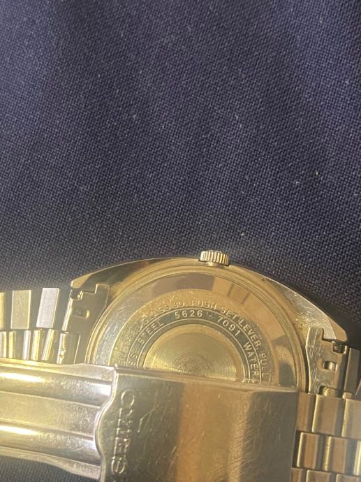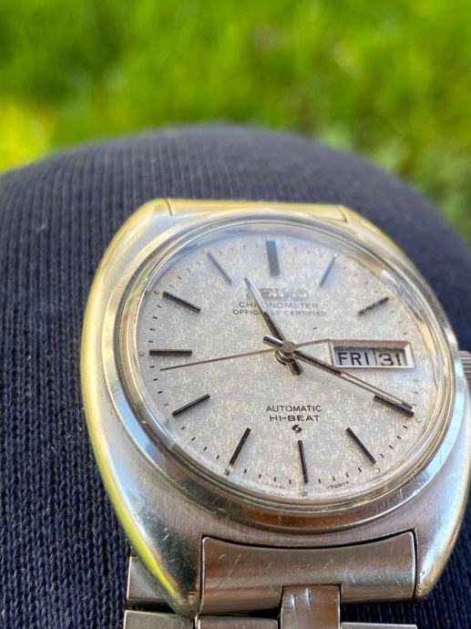 Prodajem vrlo rijetki Seiko Chronometar sa automatic mehanizmom(Hi-Beat 28.800). Calibar sata je 5626. Model 7091. Sve funkcije i to namještanje dan/datum, hakiranje kao i mogučnost navijanja su ispravne. Originalna narukvica sa čvrstim karikama. Poseban brojčanik kao “zvjezdano nebo” sa “fiorentinskim završetkom obrade” je u mint stanju. Također i kazaljke. Prodaje se uz obavezno preuzimanje i bez zamjena.