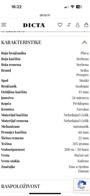 Prodajem sat u odličnom stanju. Nema vidljivih tragova korištenja osim jedne crtice sastrane.