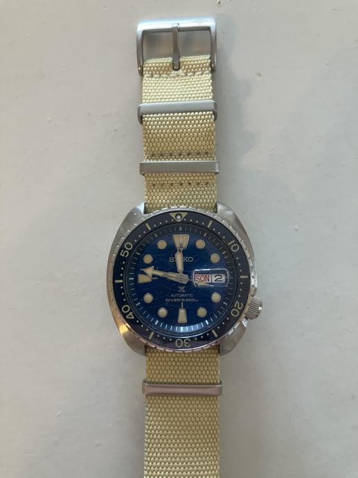Prodajem Seiko King Turtle kornjaču kupljenu u Montreu 2020., nemam račun, imam sve ostalo od papirologije+komplet kutiju. Poravnat kao što se može očekivati od Seika, dakle ne 100%. :) Na satu su normalni tragovi nošenja, ali bez ikakvih značajnijih ogrebotina ili slično, pokoji hairline. Metalne narukvice nema, prodana je. Sat dolazi s original gumom te tri CNS Nato remena kupljena isključivo za njega, od toga je ovaj krem i žuti s crvenom štraftom u sredini De Luxe serija CNSa. Prodaje se jer sam kupio Willarda pa jedan Seiko mora dalje. Zamjene me ne zanimaju, šaljem bilo gdje u RH na rizik i trošak kupca nakon primitka uplate, ali naravno preferiram keš na ruke i osobno preuzimanje u Zagrebu.