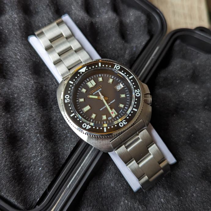 Prodajem Seiko Mod, Captain Willard (6105-8110) hommage sa Seiko NH35 mehanizmom, safirnim staklom te narukvicom od nehrđajućeg čelika pune duljine. Kućište i narukvica su aftermarket, mehanizam i cifer Seiko.