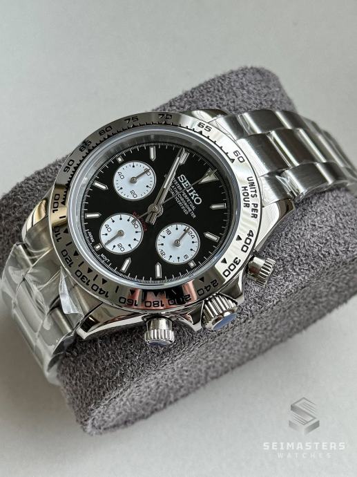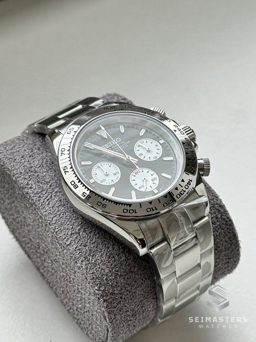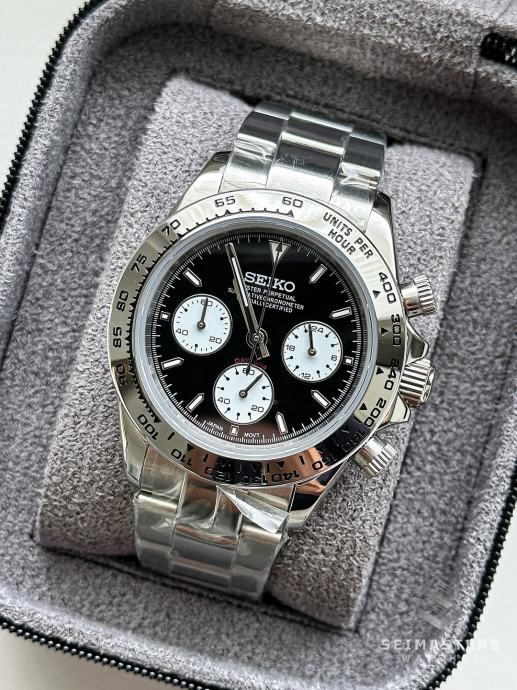 Seiko MOD Daytona Silver Black 40mm - **NOVO**
