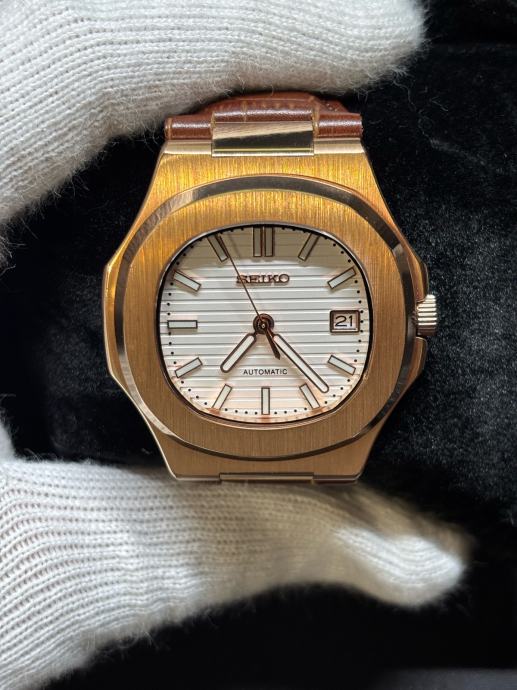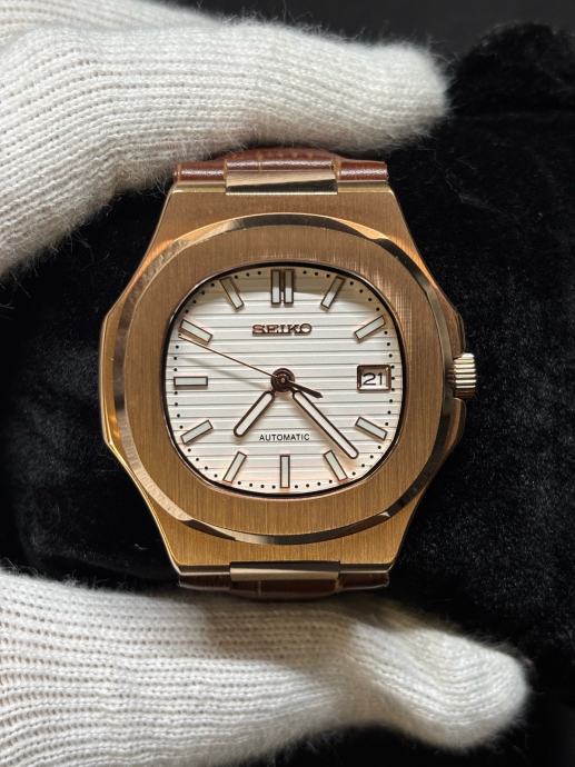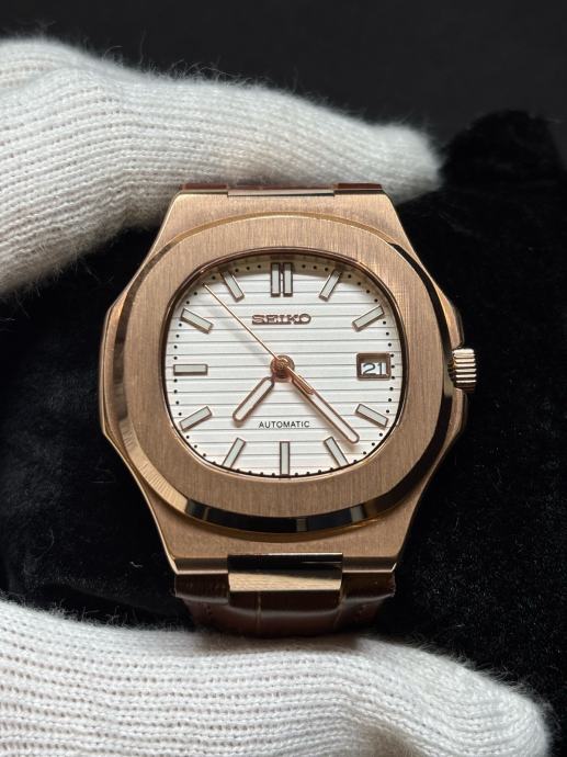 SEIKO MOD - NAUTILUS ROSE GOLD - 42mm, BIJELI, AUTOMATIC