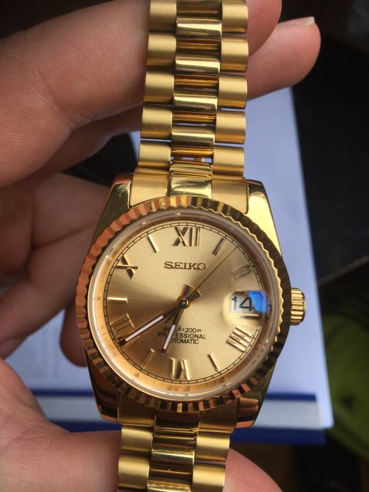 Prekrasan Seiko gold presidental mod, safirno staklo, keramički obrub otporan na ogrebotine, Seiko NH34 pokretni mehanizam.