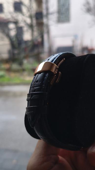 Tamno plavi kožni remen s rosegold preklopnom kopčom