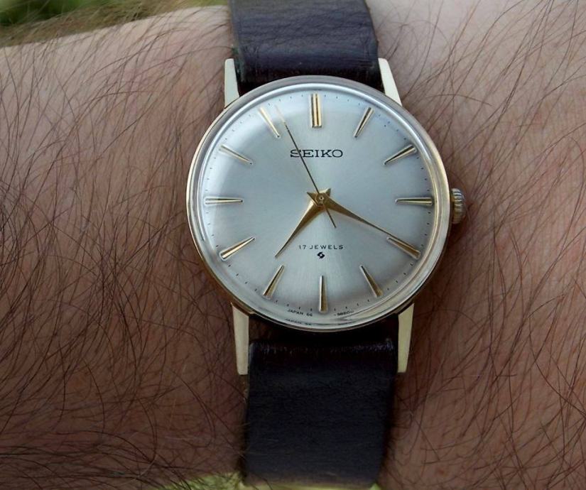 O „ Seiko“ satovima sam veoma opširno pisao u svojim ranijim oglasima (o samim počecima u 19-om vijeku i Kintaro Hatoriju, preko svega zaboravljenog I izostavljenog što je podrazumjevalo konstantnu želju za boljem, višim ciljevima, konstantne inovacije, I bezgrešnu posvećenost kvalitetu… zaključno sa svim uspesima ove tvtke i zašto ne postoji ljubitelj ili kolekcionar satova koji nije čuo više puta u svom životu za riječ „ Seiko“ )… Sat koji se prodaje nije jedan od klasičnih starih automatik „ Seiko 5“ satova koje svakodnevno masovno viđate u prodaji, već je u pitanju navijač(što je dosta retko u ponudi), model iz prve polovine 1960ih godina sa fantastičnim mehanizmom kalibra „66A“ … model sa kućištem u pozlati, ciferom šampanj boje, oznakama za časove u pozlati, kao i pozlaćenim „ oštrim“ kazaljkama… Lijep i elegantan primjerak starog „ Seiko“ navijača… .POGLEDAJTE I MOJE OSTALE RIJETKE SATOVE IZ VELIKE KOLEKCIJE KOJI SE PRODAJU PO NAJNIŽIM CIJENAMA U SVIJETU...