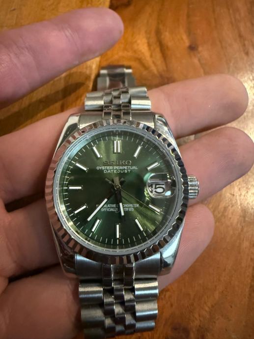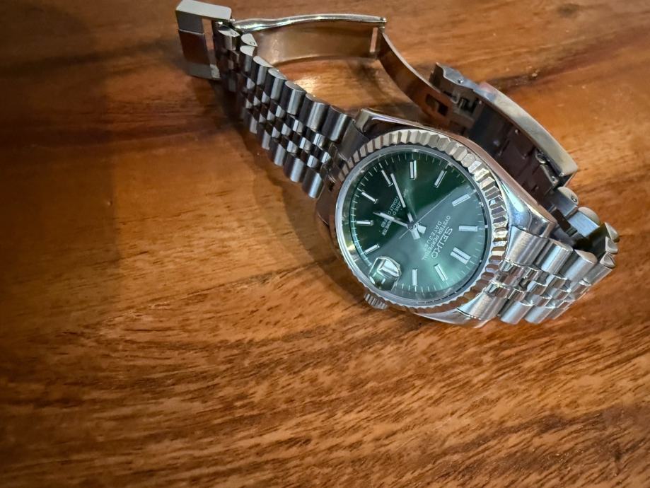 Prodajem potpuno novi muški sat marke Seiko sa elegantnom zelenom brojčanicom i jubile narukvicom. Sat je u savršenom stanju, nikad nošen, samo bez originalne etikete. Klasičan dizajn s prepoznatljivim Seiko kvalitetom idealan je za sve prilike.