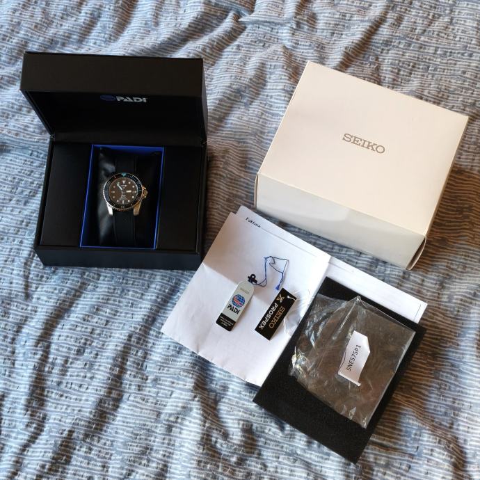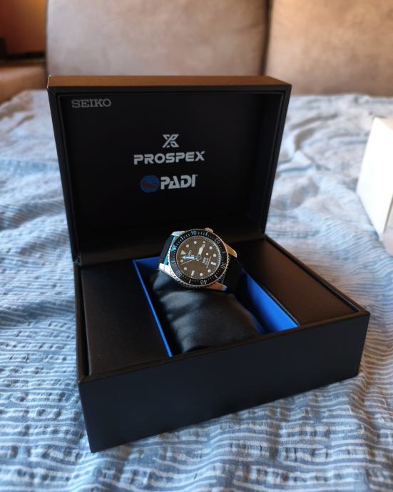 Prodajem Seiko Prospex Solar PADI Special Edition SNE575 u tip top stanju. Kupljen krajem lipnja 2024. Još pod garancijom. Radi savršeno, sekundarka pogađa markere, poravnat. Premium PADI kutija.