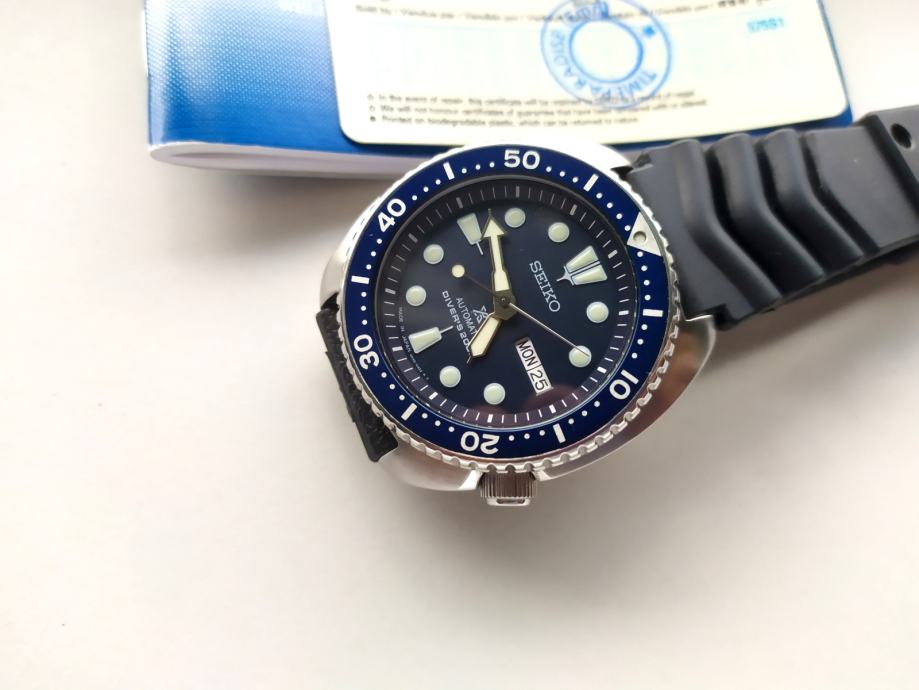 Seiko Prospex Turtle SRP773 (plavi brojčanik) s automatskim mehanizmom # 4R36 i svjetlećim kazaljkama i markerima.