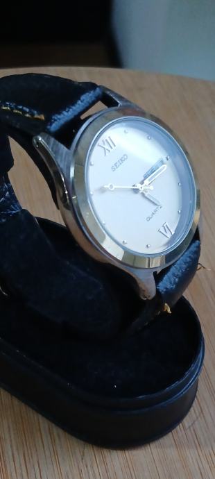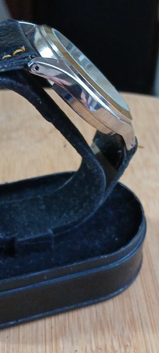 Muški analogni sat ispravan i dobro ocuvan,uredno prebacuje dan i datum,nova urarska baterija,dobar mozni remen vidljiva sitnija ostecenja na kucistu usljed uporabe ali nudta strasno.šaljem tisak,pošta,njuškalo.