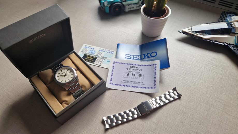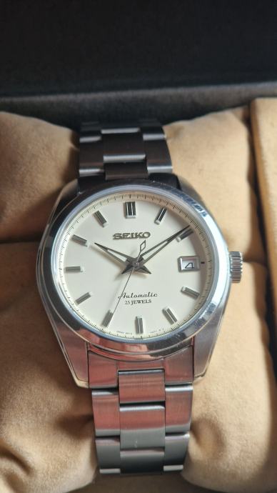 Prodajem Sarb035 iz 2017.g. u solidnom stanju, tragovi korištenja na bezelu. Sat dolazi sa kutijom, katicom i papirima, orginalna metalna narukvica dovoljna za zglob do cca 17cm, što je bio i razlog kupnje uncle seiko oyster narukvice koja dolazi u punoj dužini.