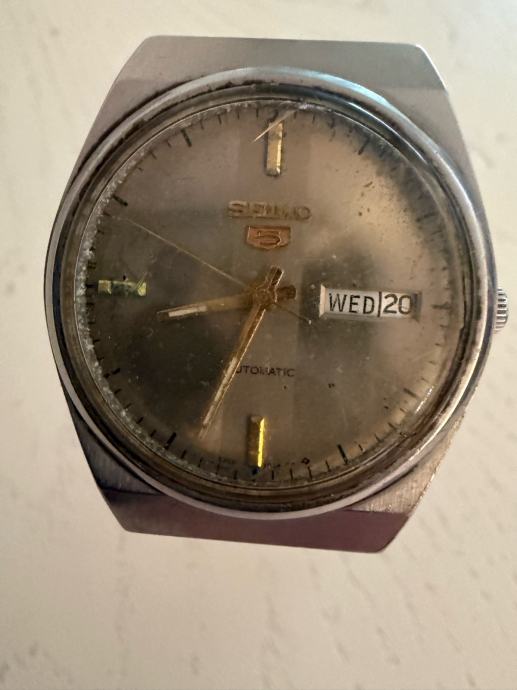 Prodajem Seiko 5 Automatic muški sat s metalnom narukvicom. Radi se o automatskom mehanizmu, što znači da se sat navija sam od sebe nošenjem. Brojčanik je u srebrno-sivim tonovima sa zlatnim kazaljkama i indeksima, a sat ima praktičan prozorčić s prikazom dana u tjednu i datuma. Kućište i narukvica su od metala srebrne boje. Unikatni vintage primjerak koji se sve teže pronalazi.